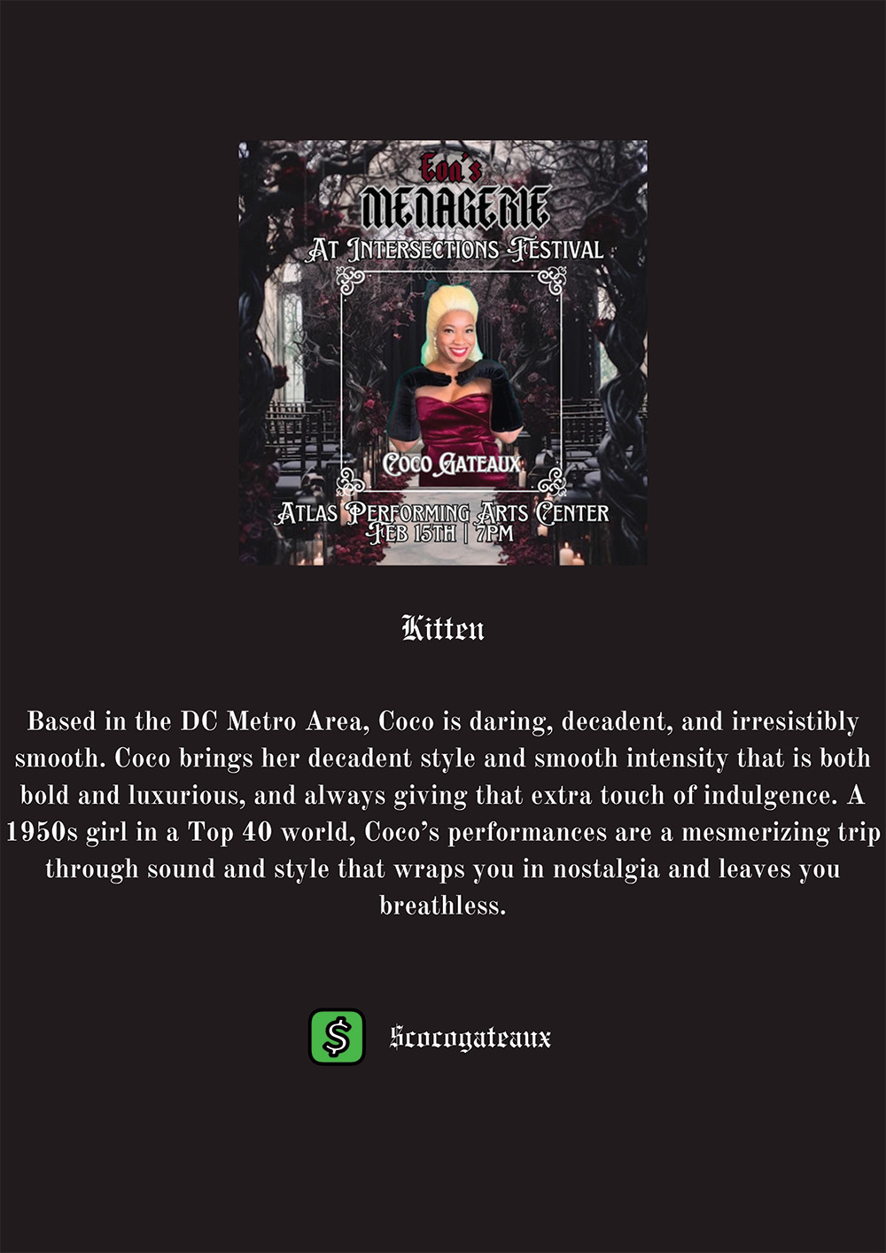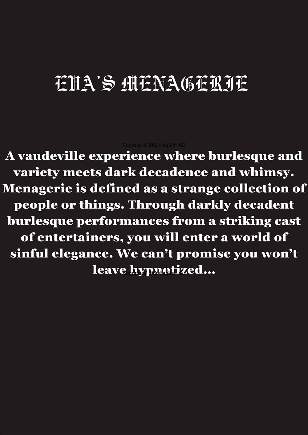 A vaudeville experience where burlesque and variety meets dark decadence and whimsy.