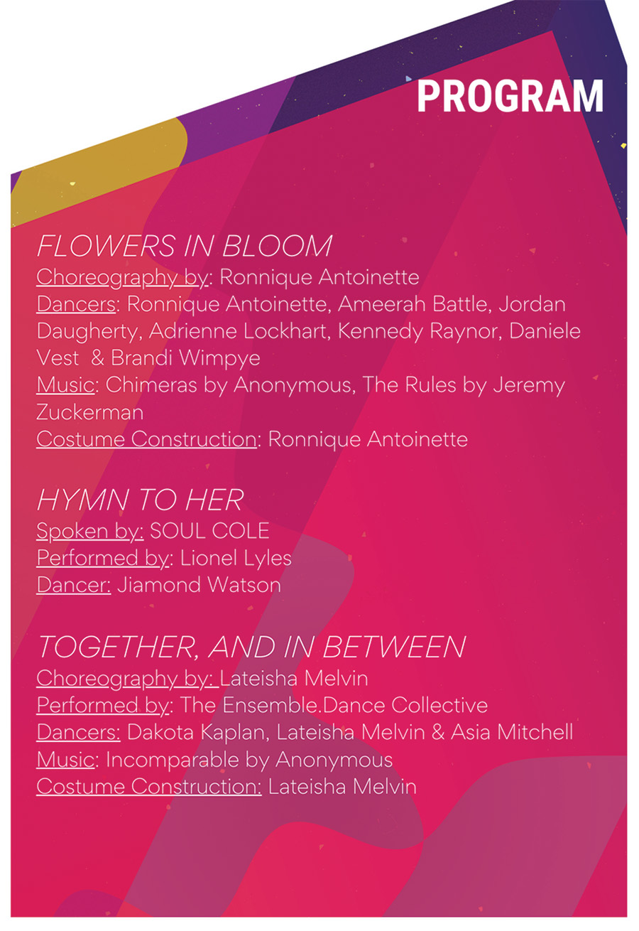 Collaborators: Roberta Rothstein, Artistic Director of Momentum Dance Theatre; Margaux Lieser, Resident Artist; Shayla Watkins, Resident Artist and Momentum Faculty; Rob Orwin, Musician and Momentum Sound Engineer.