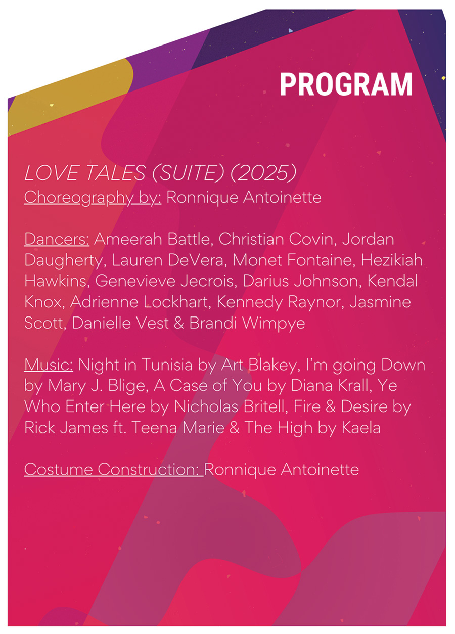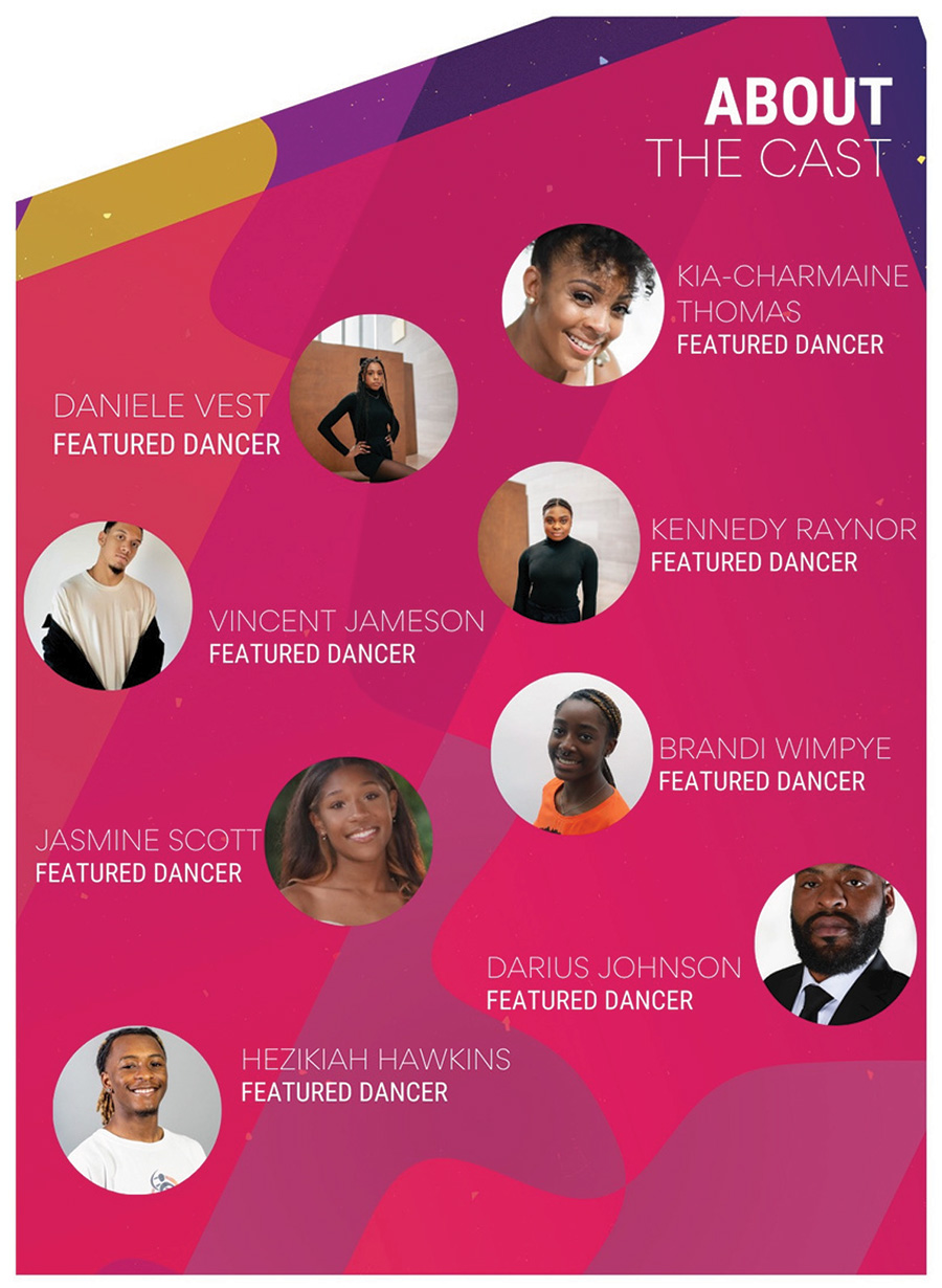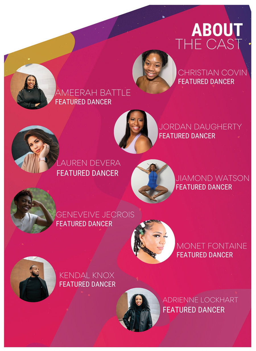 Dancers: DeAunna Blackwell, Jenn Cinicola, Annika Dodrill, Tanner Fant, Margaux Lieser, Drew Scammell, Lydia Tiersky, Grace Walker, Lauren Wodarski