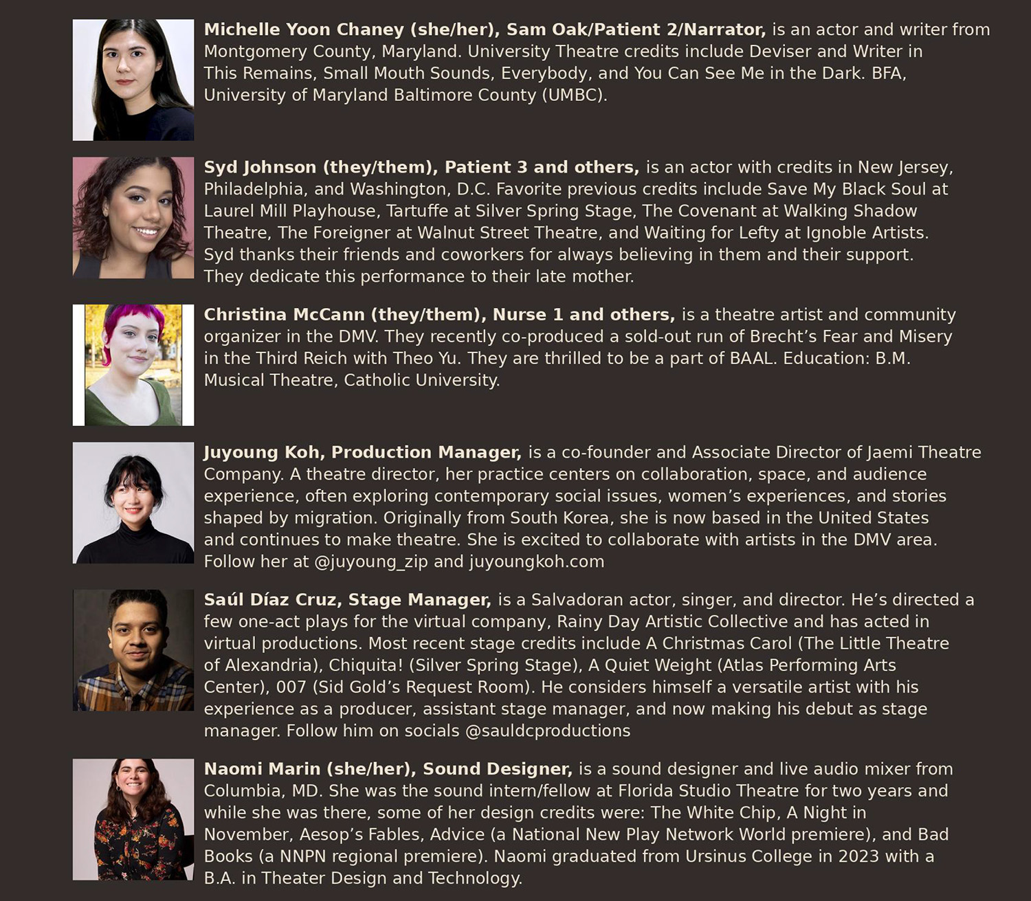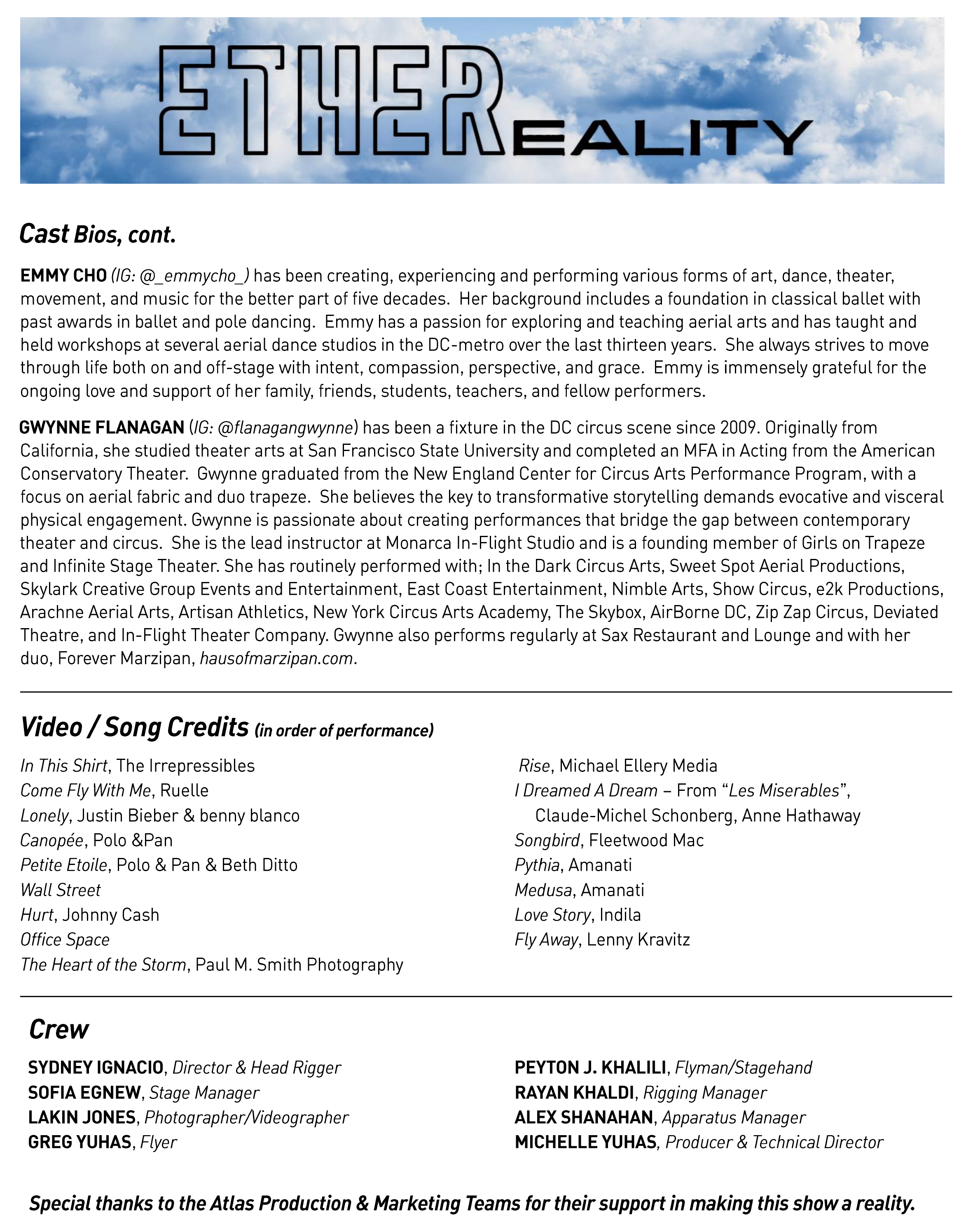 Dancers: Sara Bradna, Annika Champe, Laurice Chow, Cecilia Esterline, Etta Hulcher, Anna Lipkin, and Elizabeth Smith Costume Designer: Anne Liberman