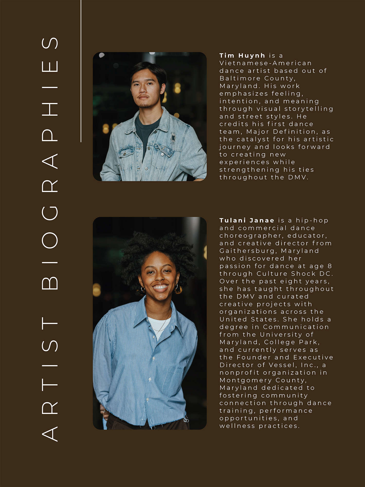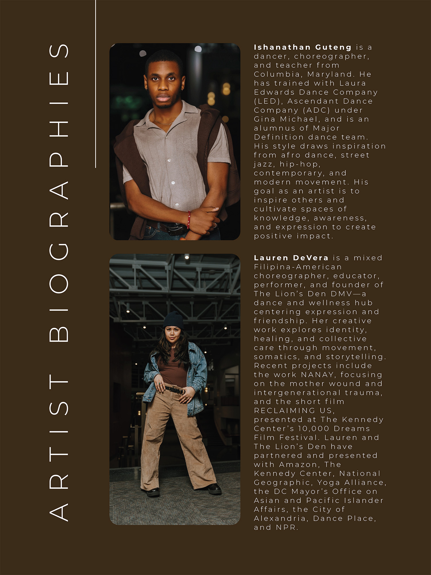 Chandini Darby, Kyoko Fujimoto and Umami Playground- Three choreographers will present a dynamic triple bill exploring how cities and cultures shape identity, inspired by DC, NYC, and Tokyo.