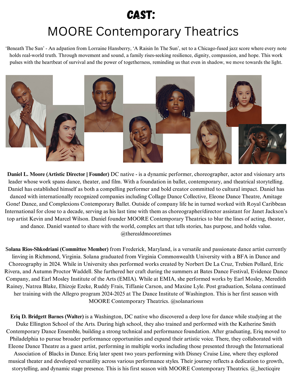 A visceral dance reimagining of A Raisin in the Sun, exploring Black dreams, survival, and identity through contemporary movement and theatrical storytelling.