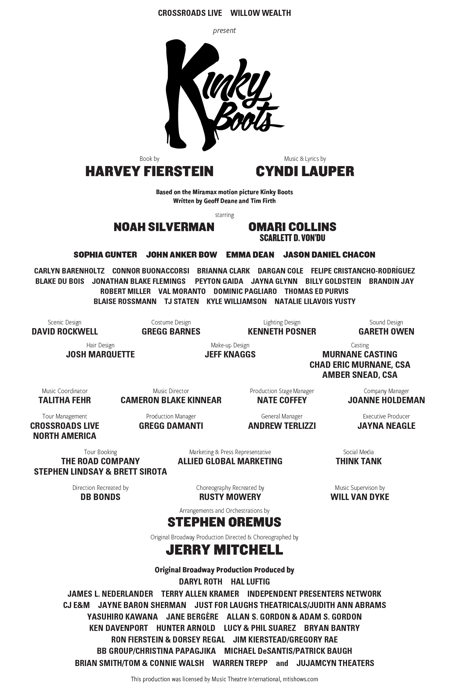 Omari Collins “Scarlett D. Von’Du” (Lola) is thrilled to be back in the Boots for the seventh time! A KCMO native and NYC-based drag artist. Regional: Kinky Boots, NCL, RWS Global, Cedar Fair: Live Entertainment.