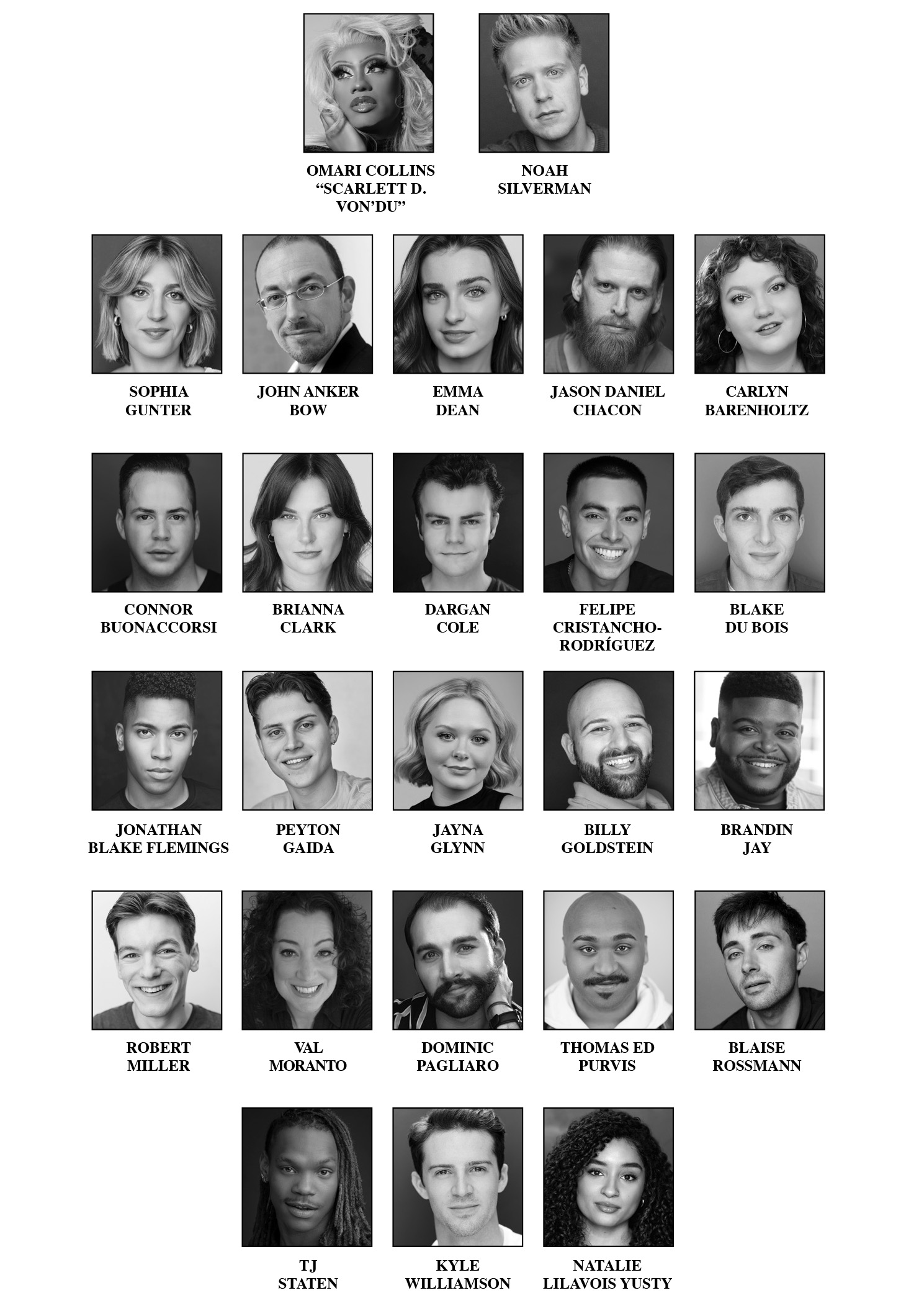 CARLYN BARENHOLTZ, BLAKE DU BOIS, JAYNA GLYNN, BILLY GOLDSTEIN, BRANDIN JAY, VAL MORANTO, DOMINIC PAGLIARO, THOMAS ED PURVIS, KYLE WILLIAMSON, NATALIE LILAVOIS YUSTY