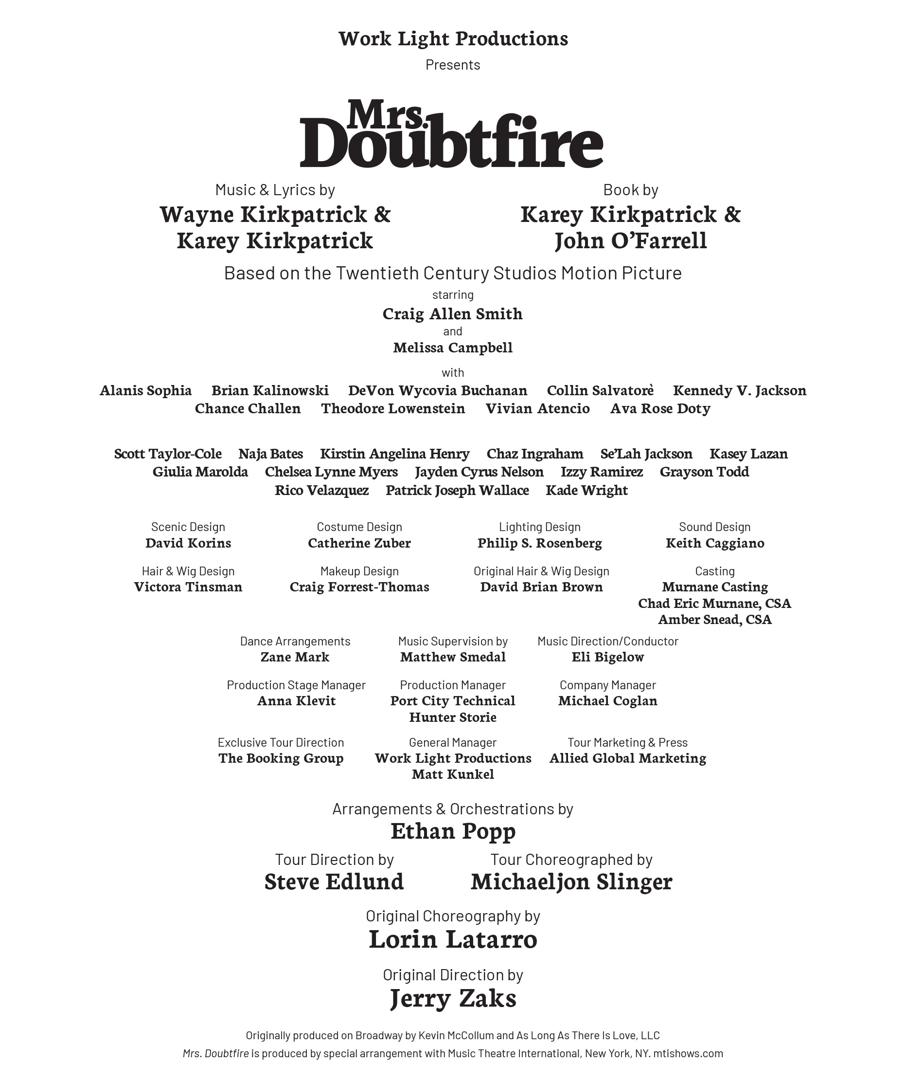 The Director and Choreographer are members of the Society of Stage Directors and Choreographers, Inc., an independent national labor union.