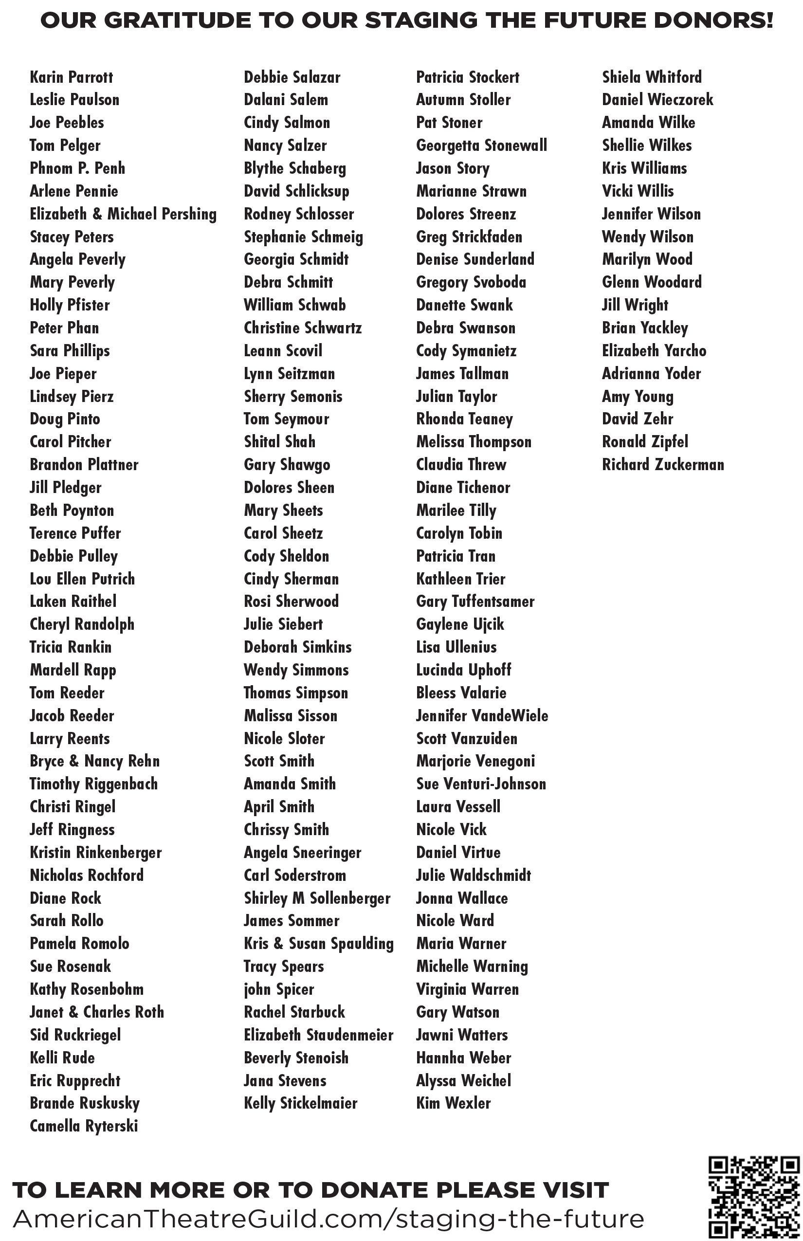 The Director and Choreographer are members of the Society of Stage Directors and Choreographers, Inc., an independent national labor union.