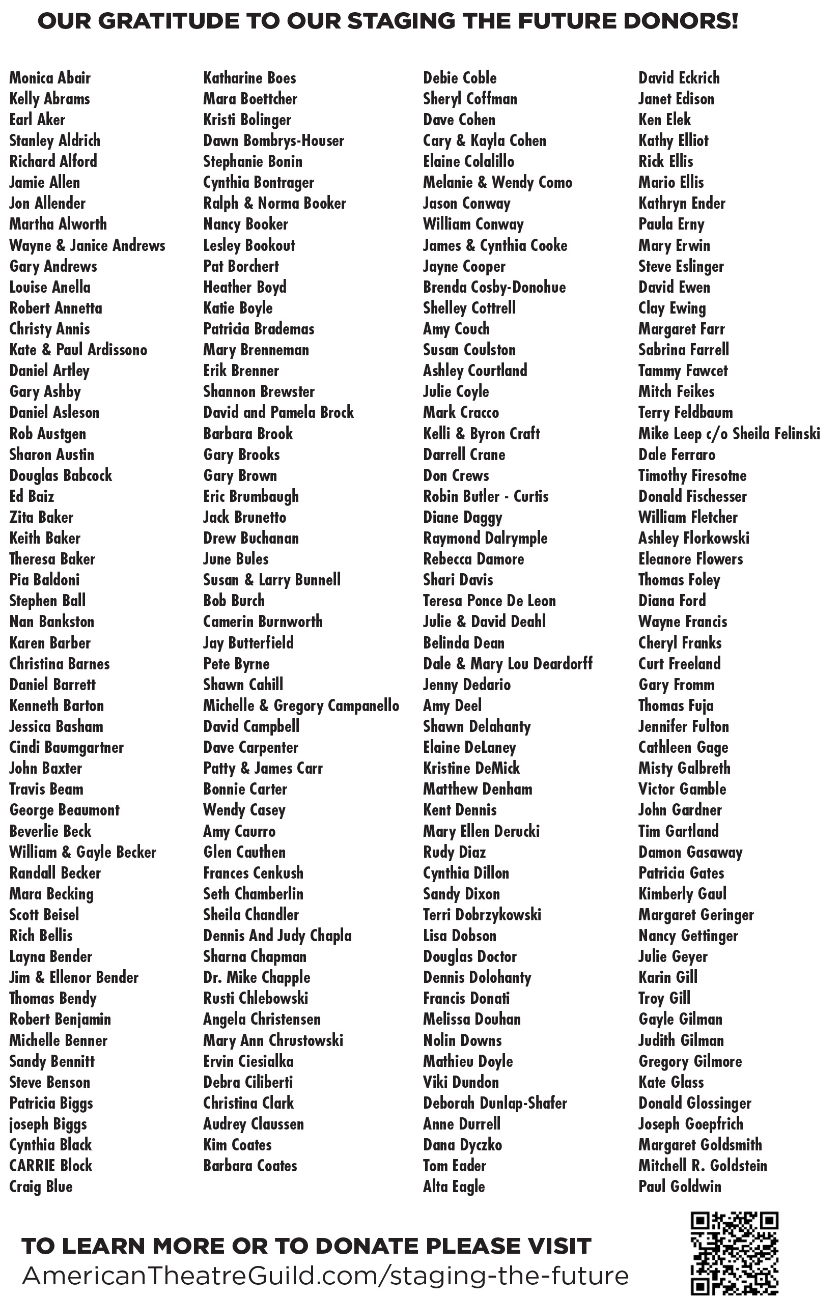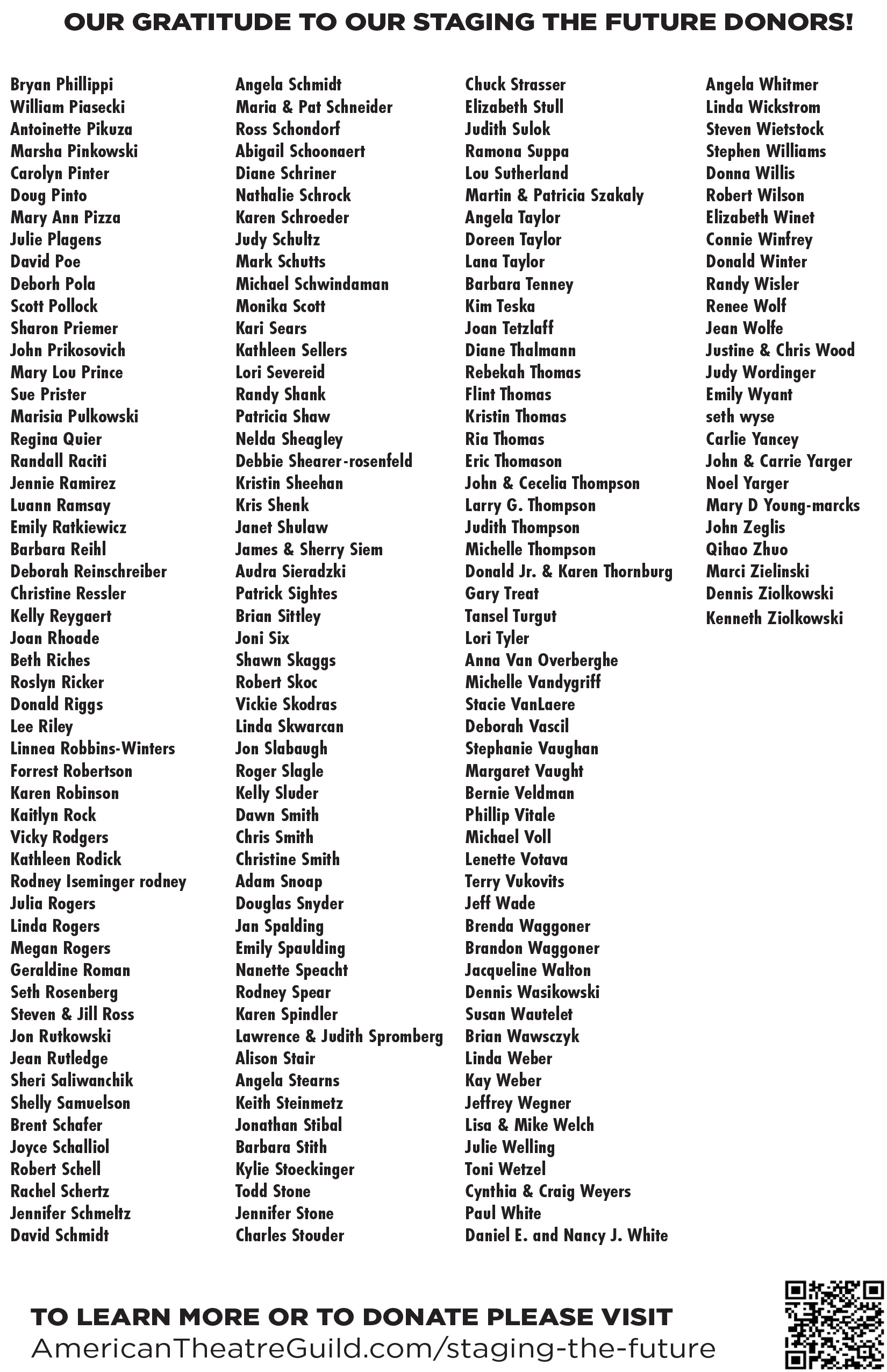 The Director and Choreographer are members of the Society of Stage Directors and Choreographers, Inc., an independent national labor union.