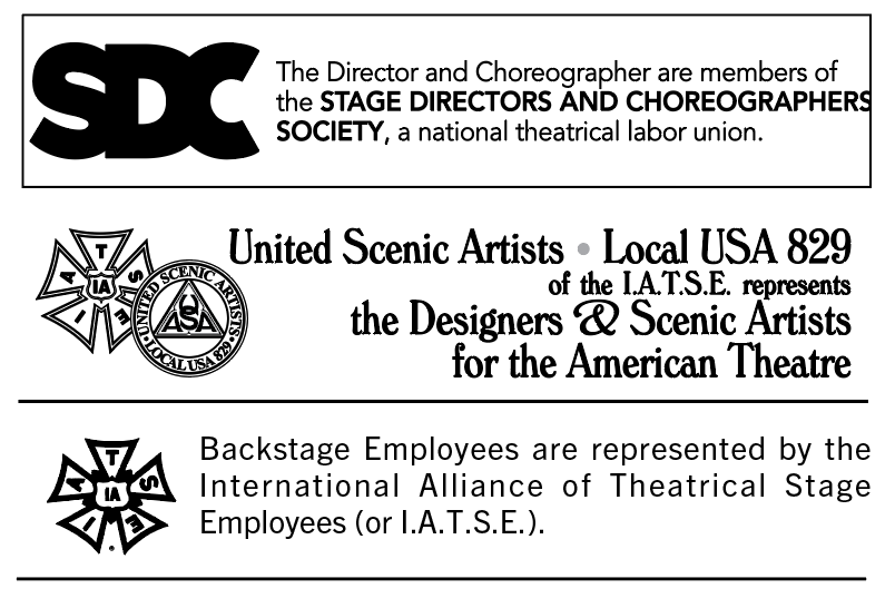 Costumes built and provided by Siam Costumes, Christopher Schramm, Giliberto Designs, Arel Studio, Bethany Joy Costumes. Audio Equipment provided by PRG. Lighting and Rigging Equipment provided by Christie Lites. Workboxes provided by Port City Equipment Rental. Scenery built and painted by TTS Studios. Original Props from Cleveland Play House. New Prop builds & modifications from BrenBri Props. Wigs built by Backstage Artistry.