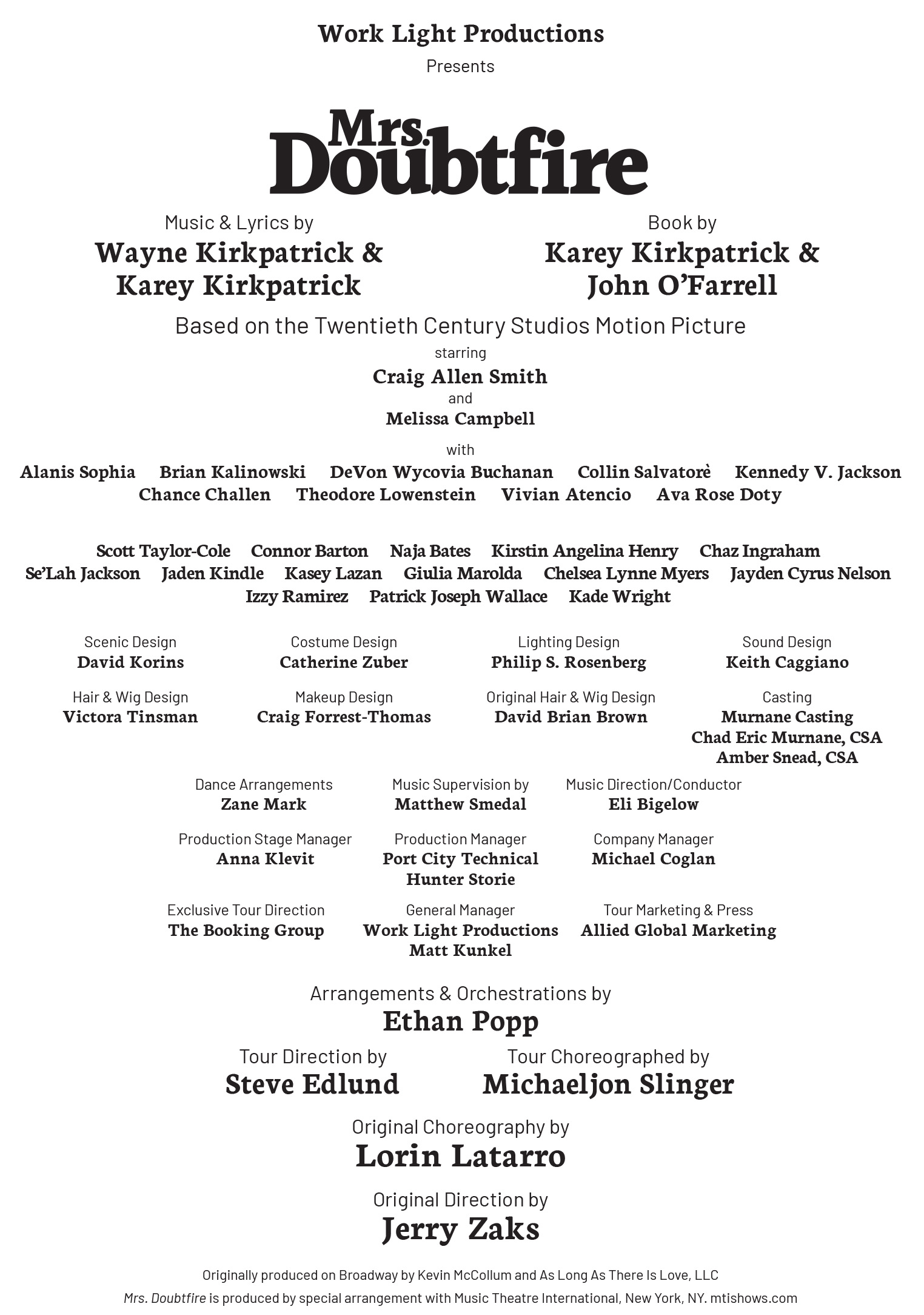 The Director and Choreographer are members of the Society of Stage Directors and Choreographers, Inc., an independent national labor union.