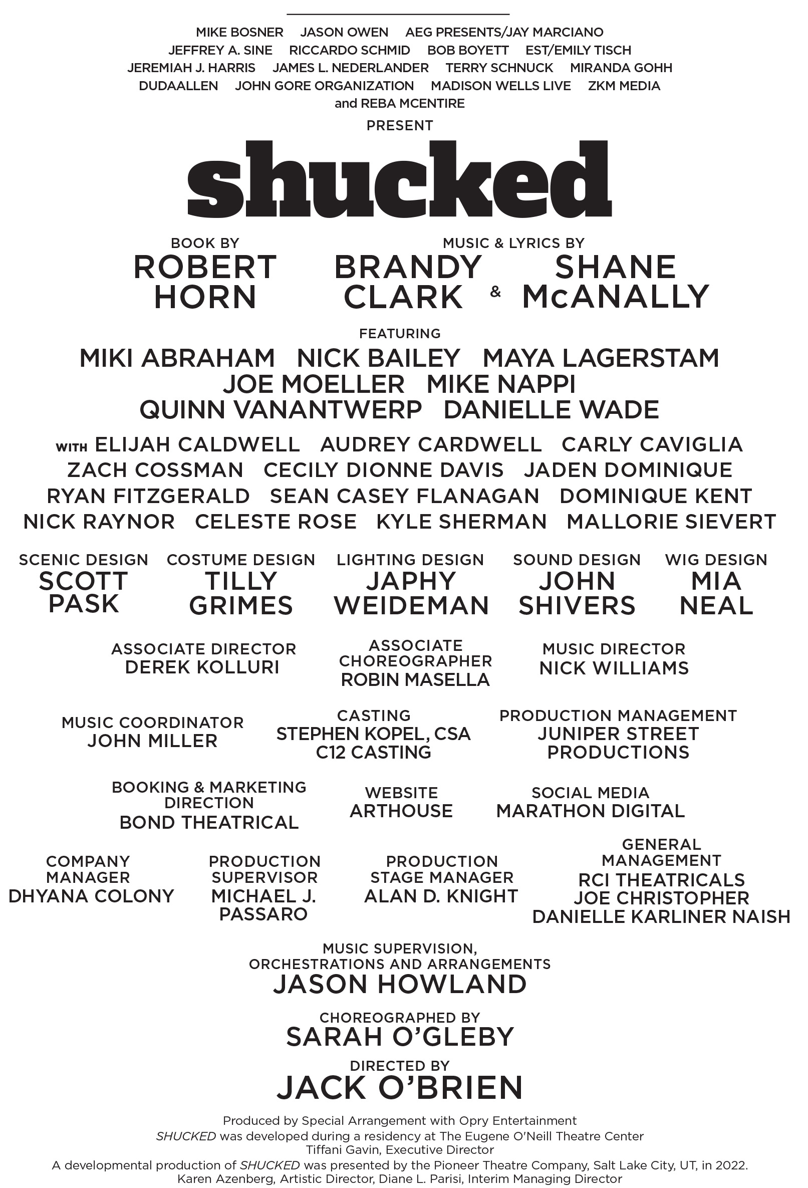 SHANE McANALLY (Composer/Lyricist). With over 50 #1 songs and three Grammy awards, Shane McAnally is one of the most successful songwriters in music. He has written and/or produced for everyone from Kelly Clarkson to Kacey Musgraves, Dolly Parton, Blake Shelton, Sam Hunt and Kenny Chesney. In 2022, Shane became the most nominated songwriter in CMA history, and has been named “songwriter of the year“ twice by the Academy of Country Music. In 2012, he founded SMACKSongs, a publishing, digital and management company that has celebrated over 80 #1 songs. McAnally starred on NBC’s “Songland” alongside Ryan Tedder and Ester Dean, and is the co-president of Monument Records—with a roster that includes Walker Hayes, whose record breaking single “Fancy Like” (co-produced by McAnally) spent 24 weeks at #1 in 2021.