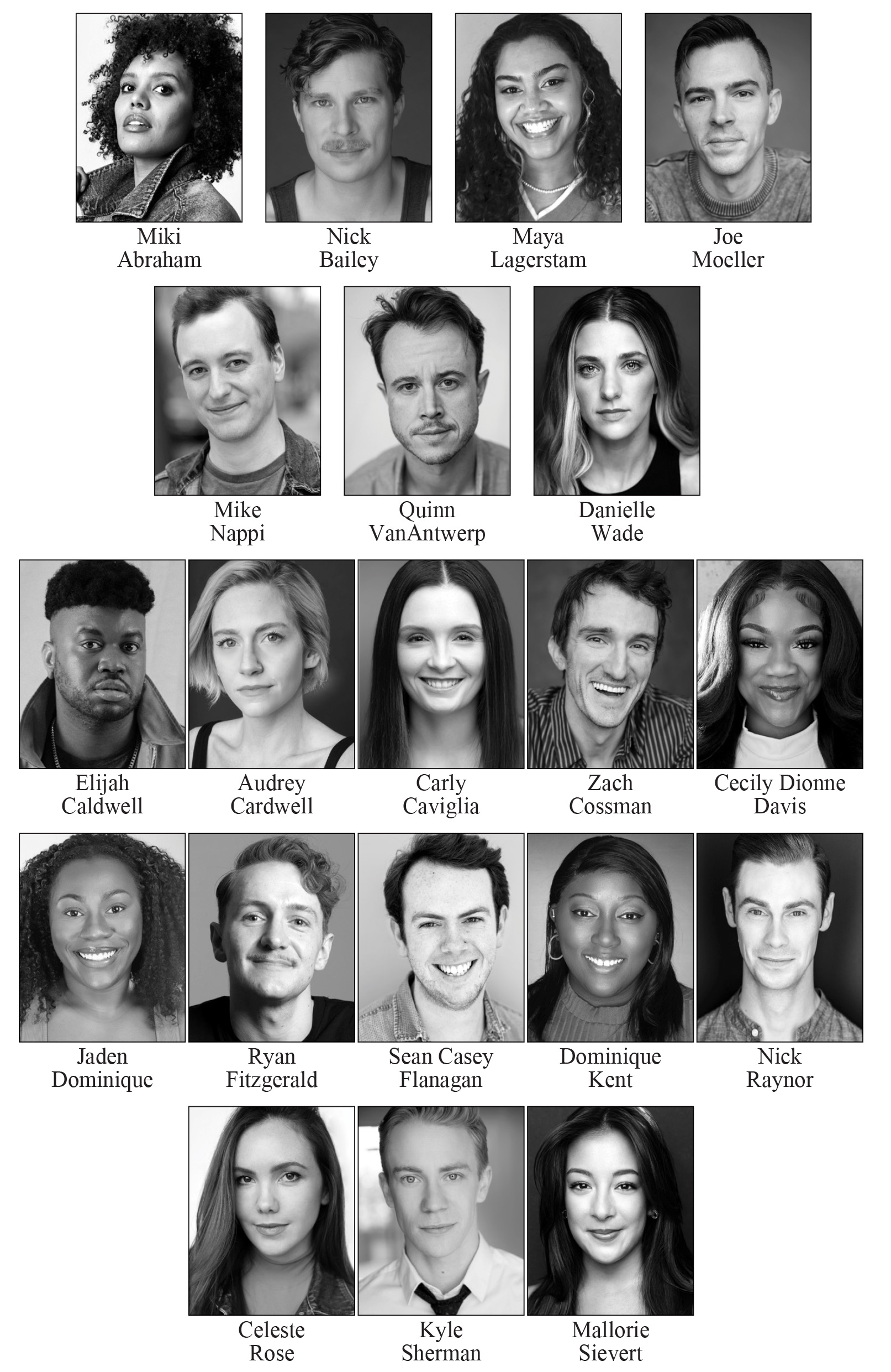 For Lulu–CECILY DIONNE DAVIS, JADEN DOMINIQUE, DOMINIQUE KENT; for Beau–ZACH COSSMAN, KYLE SHERMAN; for Storyteller 1–CECILY DIONNE DAVIS, JADEN DOMINIQUE, DOMINIQUE KENT; for Storyteller 2–RYAN FITZGERALD, NICK RAYNOR; for Peanut—RYAN FITZGERALD, SEAN CASEY FLANAGAN; For Gordy—ZACH COSSMAN, SEAN CASEY FLANAGAN; for Maizy–CARLY CAVIGLIA, CELESTE ROSE.