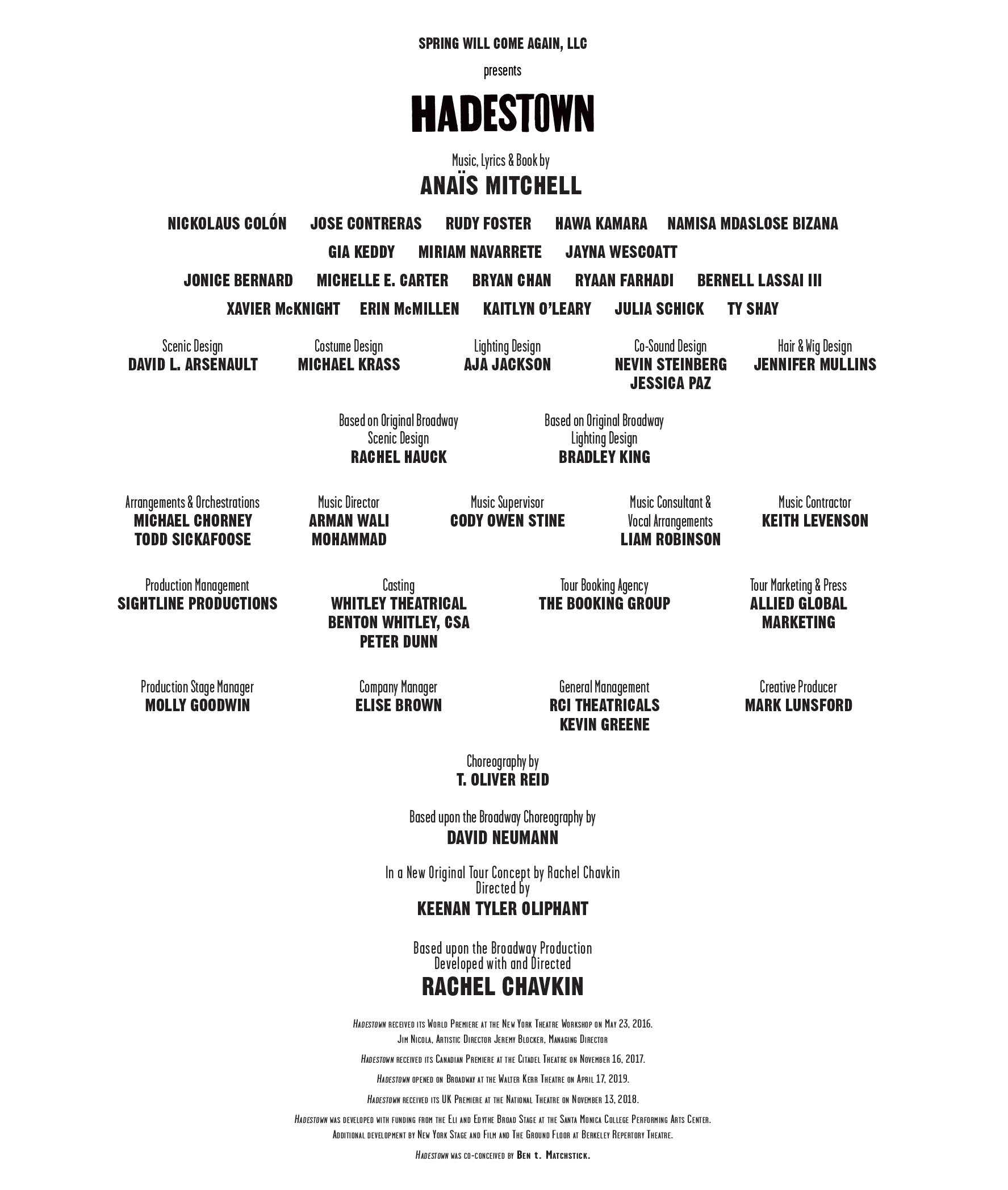 Arel Studio, Liz Riches and Karakter Worldwide. And an enormous thanks to every member of the Hadestown company, past and present, artist and crew member, onstage and off, from Vermont to Broadway and beyond.