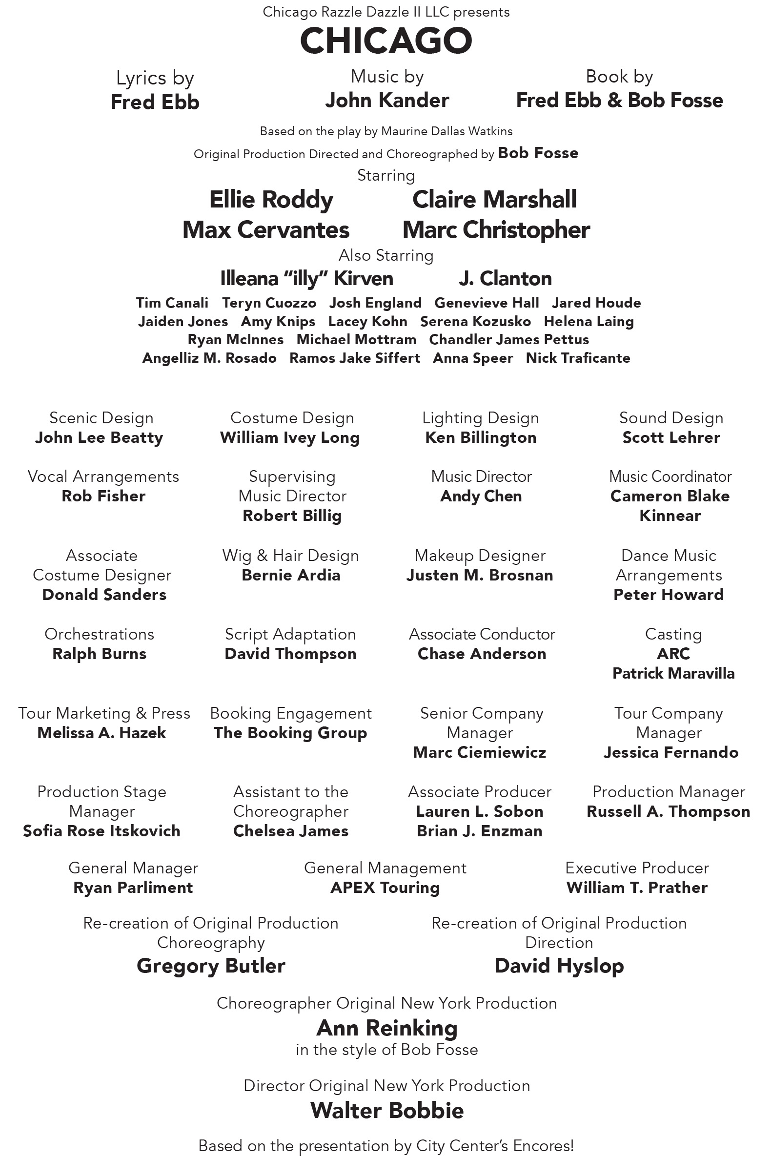 APEX TOURING, LLC (General Management) is the producer of the current tour of Chicago, being presented by Chicago Razzle Dazzle II LLC. Now in its ninth tour season, APEX has produced recent national tours which include Hairspray, Summer: The Donna Summer Musical, Once and Finding Neverland. APEX was honored to be the first company to bring a live production to the Kingdom of Bahrain and the Middle East with the international tour of The Wizard of Oz, which also performed across China. APEX produced the 2018 tour of Cabaret and 2017 tour of Pippin. APEX has been created to serve the ever-expanding need for high quality, Broadway-caliber touring productions around the world. APEX looks forward to many years of producing Broadway’s brightest new shows.