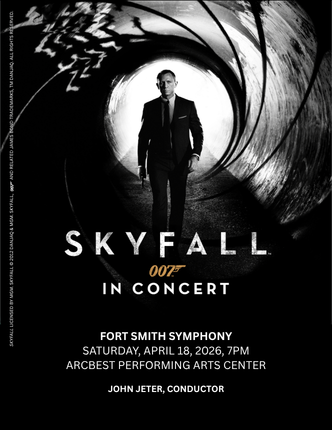 Film Concerts Live! is proud to present Skyfall in Concert, the second installment in the James Bond Concert Series, produced in association with EON Productions and Metro Goldwyn Mayer Studios (MGM). Daniel Craig returns as the legendary secret agent in the franchise’s most successful film to date. Now you will be able to experience composer Thomas Newman’s BAFTA-winning original score performed live by the Fort Smith Symphony in sync to the picture!