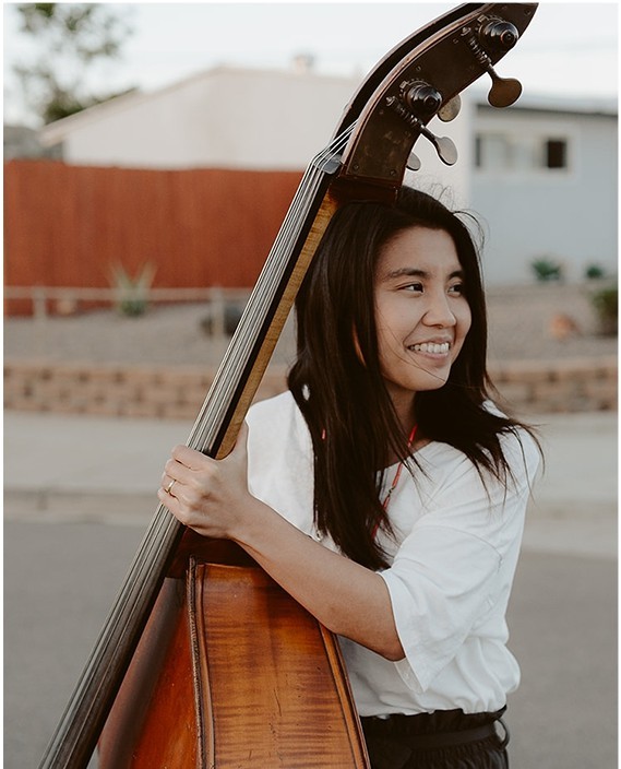 Zoe Kumagai Elias is a double bassist from Southern California. She studied classical bass with Diana Gannett, Gary Karr, and David Young. Ms. Elias has appeared on recordings including Nissman Plays Ginastera: Three Piano Concertos (2012), Points of Departure (2013), Milhaud: L’Orestie d’Eschyle (2014), and Opera Deconstructed: A Live Mixtape (2021). She was drawn to tango through its unique fusion of dance and music and has performed both on stage and at milongas with the ARTE Sextet and Las Tangueritas.