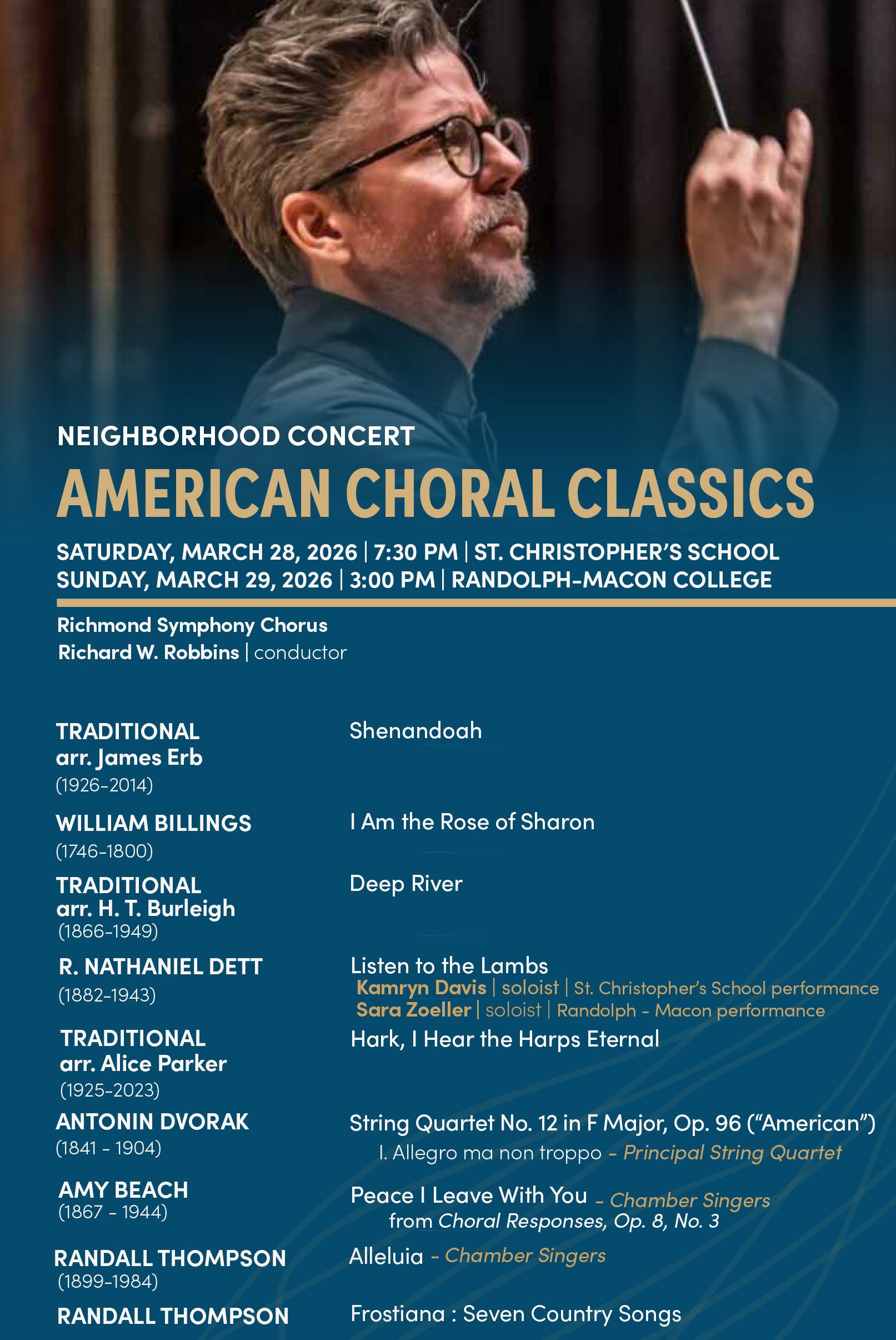 A frequent clinician and guest conductor, Robbins has appeared across the United States and internationally. He is Choral Artist-in-Residence and Director of Choral Activities at Shenandoah Conservatory. To learn more visit richmondsymphony.com
