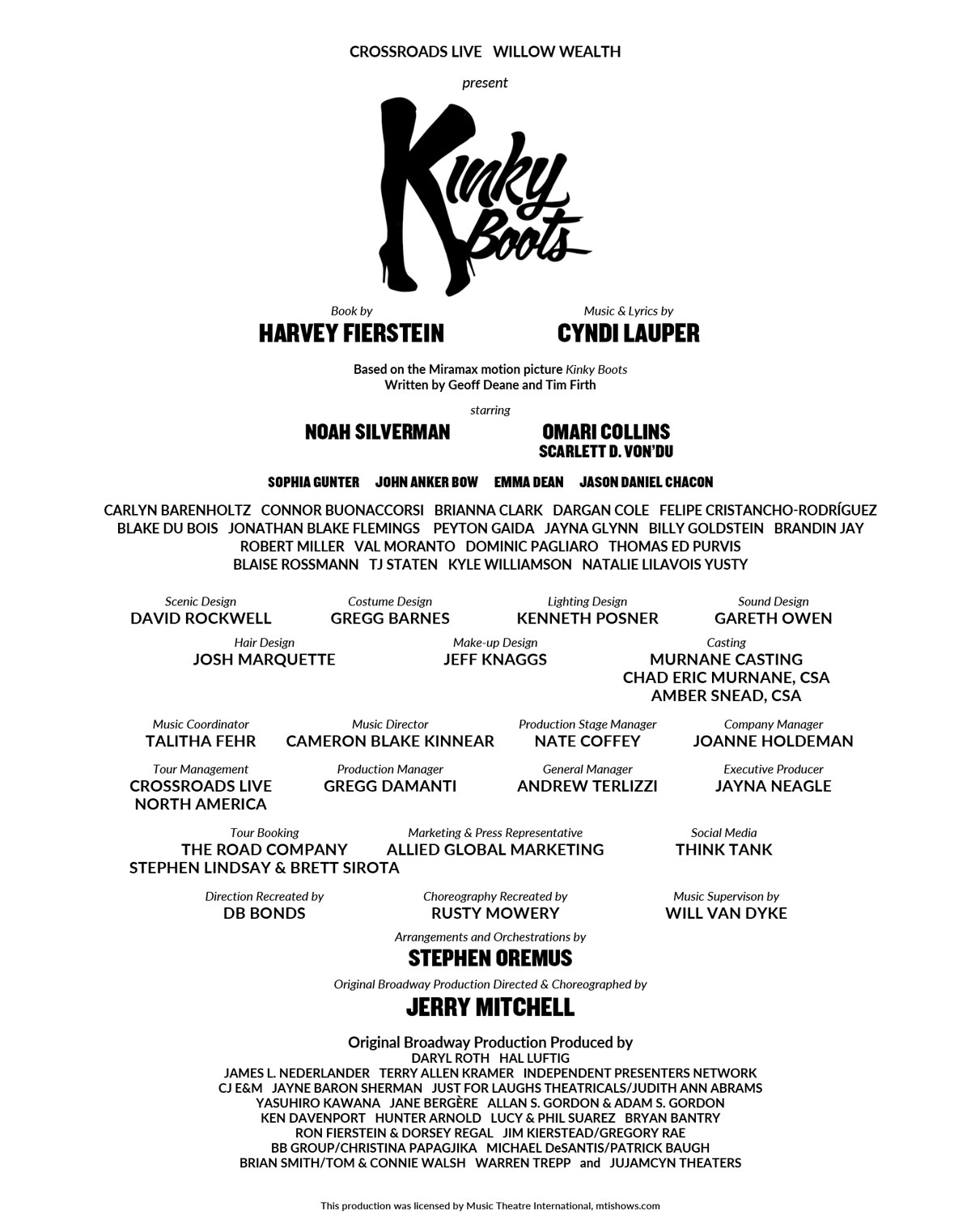 Kinky Boots rehearsed and held previews at the Clemens Center, Elmira, NY.