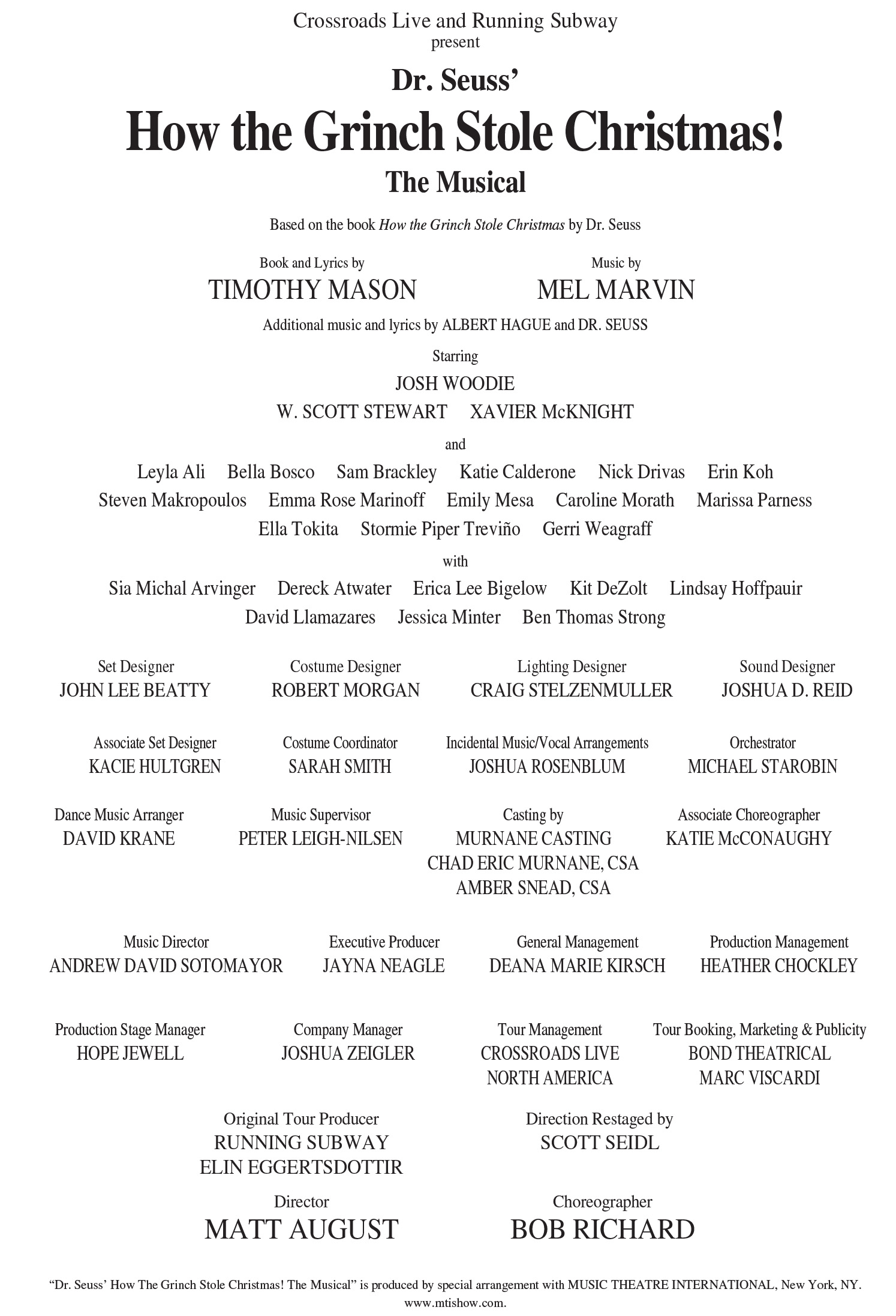 Dr. Seuss’ How The Grinch Stole Christmas! The Musical will be performed without an intermission