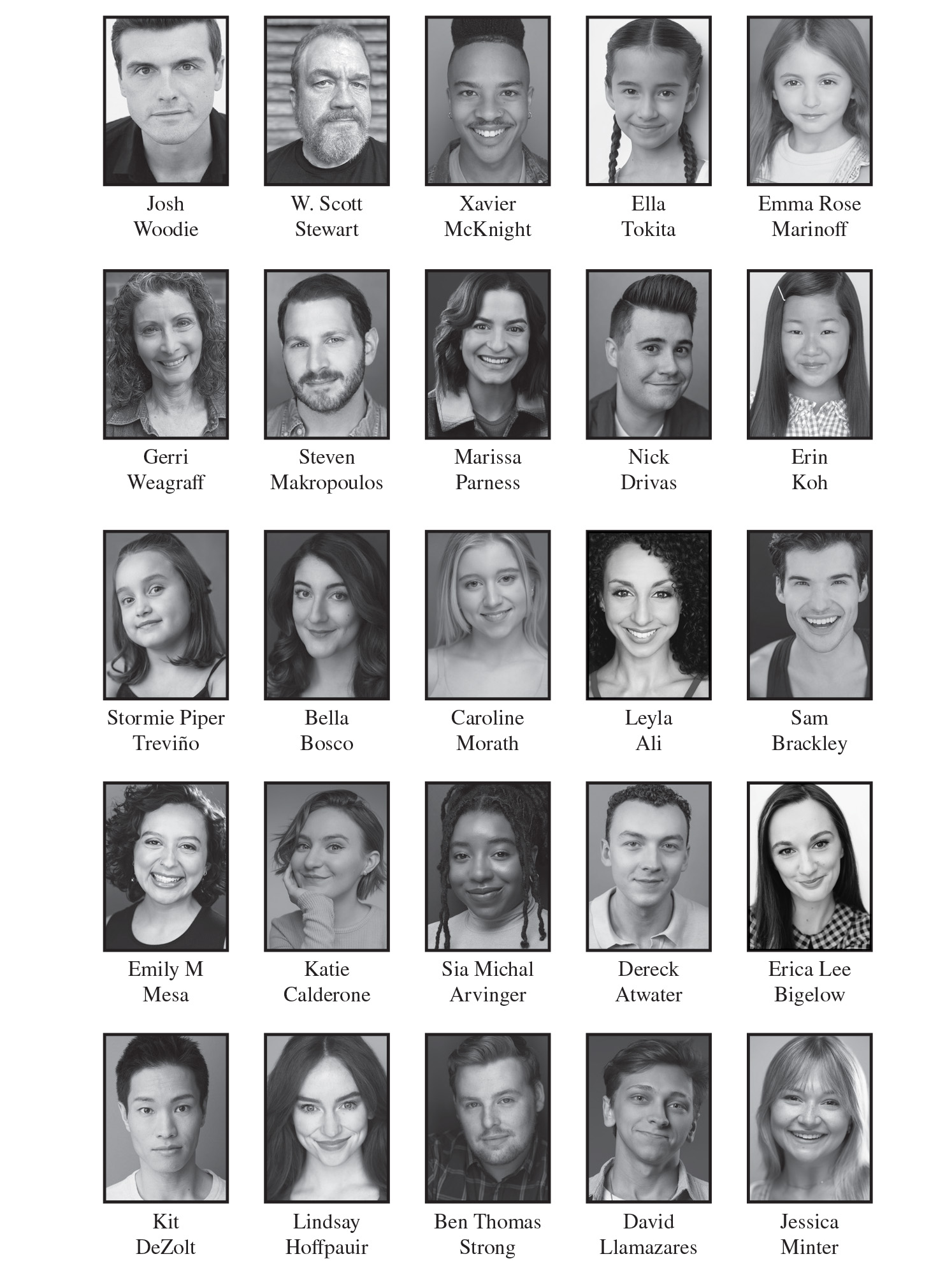 For The Grinch: DERECK ATWATER, BEN THOMAS STRONG; For Old Max: BEN THOMAS STRONG, Steven Makropoulos; For Young Max: DAVID LLAMAZARES, Kit DeZolt; For Mama Who: ERICA LEE BIGELOW; For Papa Who: SAM BRACKLEY; For Grandma Who: BELLA BOSCO; For Grandpa Who: DERECK ATWATER; For Cindy Lou Who: ERIN KOH, STORMIE PIPER TREVIÑO