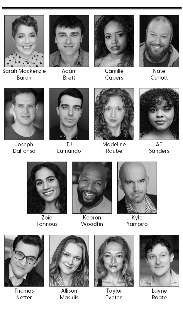 For Colonel Mustard—JOSEPH DALFONSO, KEBRON WOODFIN; For Wadsworth, Mr. Green, Professor Plum, Mr. Boddy (and others), The Cop (and others)—THOMAS NETTER, LAYNE ROATE; For Mrs. Peacock, Mrs. White, Yvette, Miss Scarlet, The Cook (and others)—ALLISON MASULIS, TAYLOR TVETEN.
